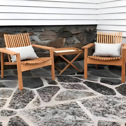 This set has completely transformed my backyard! The natural wood grain and knots give it such a charming, rustic look that blends perfectly with the garden. I was worried about durability, but the solid pinewood feels sturdy and has held up perfectly through both sun and rain thanks to the smart slatted design that drains water quickly. It’s surprisingly comfortable—the backrest supports you just right for long, lazy afternoons with a book. Absolutely in love with both the style and function!