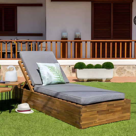 Brown Acacia Patio Foldable Sun Lounger with Cushion