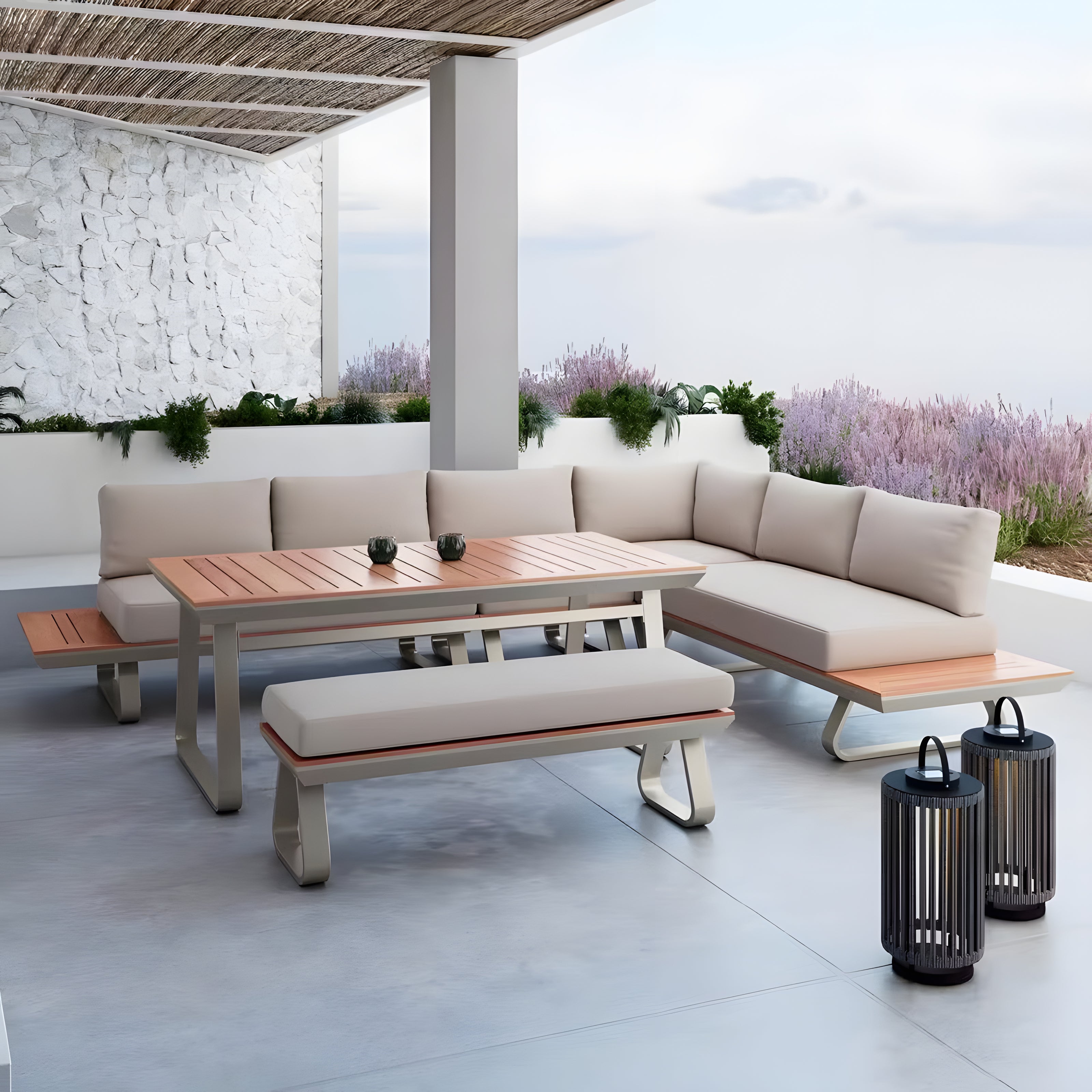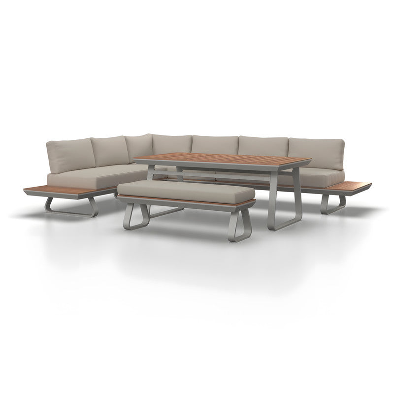 Our solid teak & steel set ages gracefully, from warm gold to silvery gray, in your eco-conscious oasis.